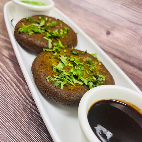 Delicious pan-fried vegetarian snack with spinach and green peas stuffed with cream cheese