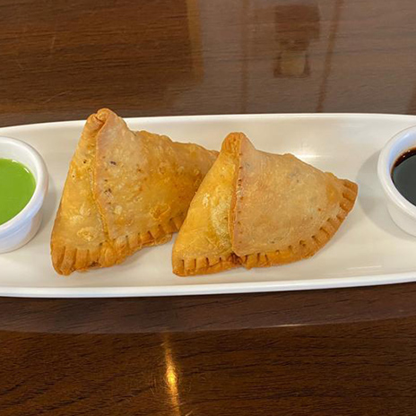 Samosa with a filling of mashed potatoes cooked in Indian spices.