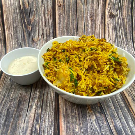 Basmati rice cooked with paneer (indian cottage cheese) and served with raita.