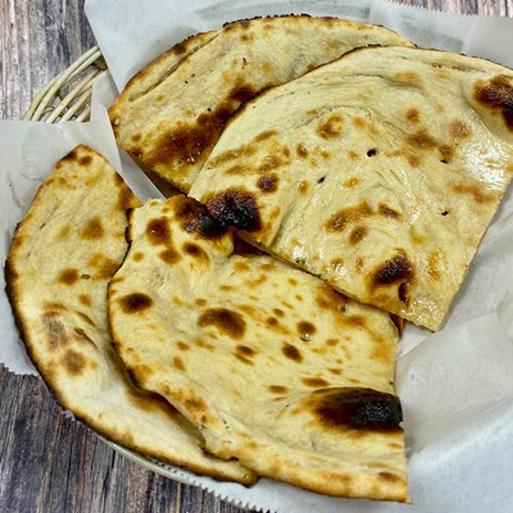 Basket of Butter Naan, Garlic Naan and Onion Kulcha made fresh in Tandoor oven