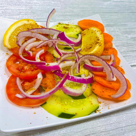 Chopped cucumber, onion, tomato, mint, cilantro, dressed with lemon juice & Indian spices