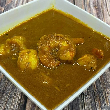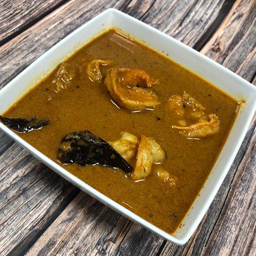 Shrimp cooked in a spicy coastal style coconut curry