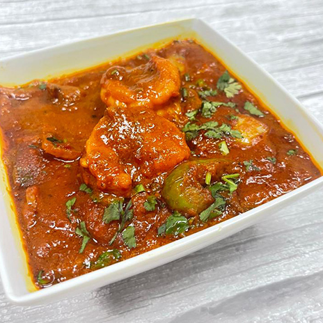 Shrimp cooked with fresh spices, ginger, garlic, onions & tomatoes