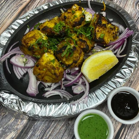 Boneless lamb prepared in fresh spices, herbs and yogurt and broiled in tandoor oven