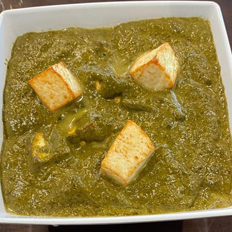 Cottage cheese cooked in a spinach-based creamy sauce.