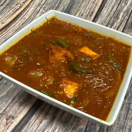 Indo-Chinese style paneer sautéed with fresh chilies, bell peppers and onions.